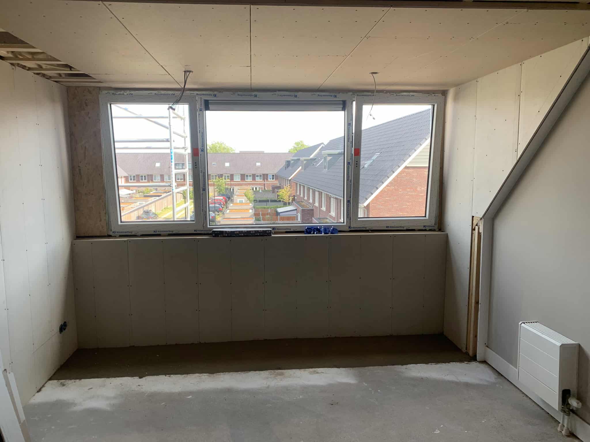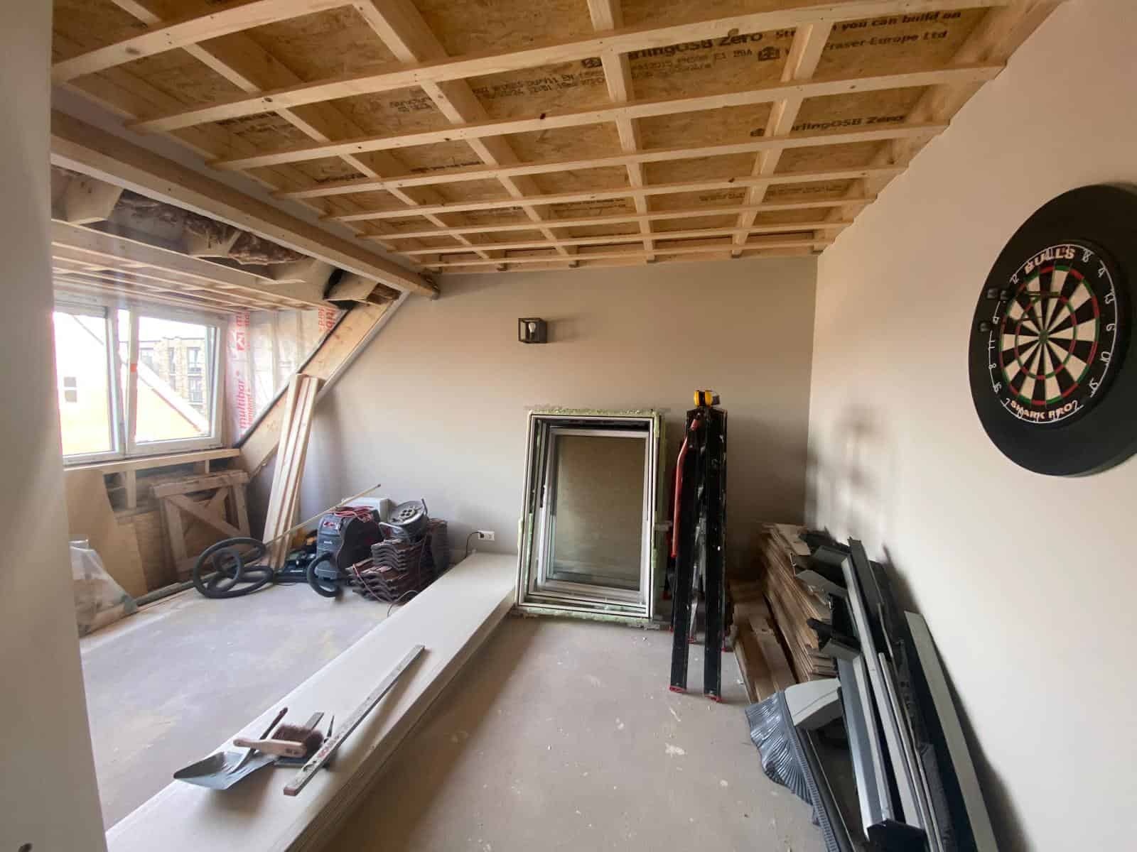 Grote dakkapel aan de achterzijde van de woning. Met een blindpaneel waardoor er eenvoudig twee kamers gecreëerd kunnen worden.